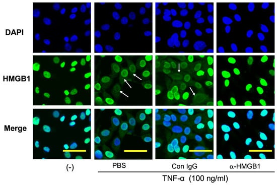 2.5. Effects of the Anti-HMGB1 mAb on Stimulant-Induced HMGB1 Translocation in Neuroblastoma Cells and Vascular Endothelial Cells