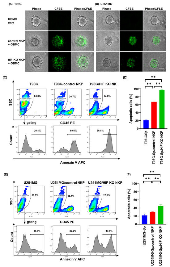 2.3. HIF-1α Knockout Human NK Cells Including Populations Enhances Apoptosis Induction of Spheroids Derived from Allogeneic GBM Cells in Hypoxic Conditions