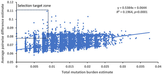 2.4. Correlating between Mutation Burdens and Averaged Pairwise Differences of Individual Samples