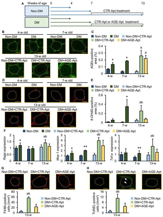 - Matsui, T.; Higashimoto, Y.; Nishino, Y.; Nakamura, N.; Fukami, K.; Yamagishi, S.I. RAGE- Aptamer Blocks the Development and Progression of Experimental Diabetic Nephropathy. Diabetes 2017, 66, 1683–1695. [Google Scholar] [CrossRef]