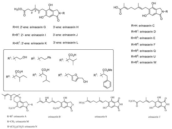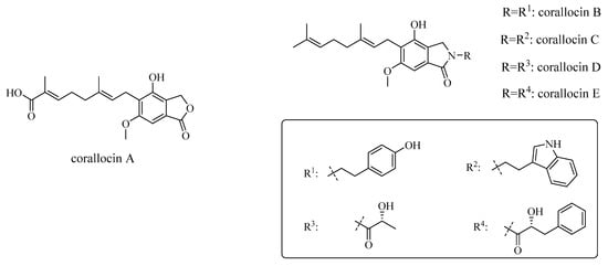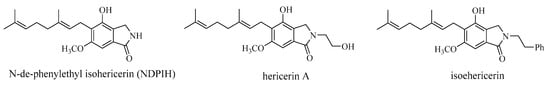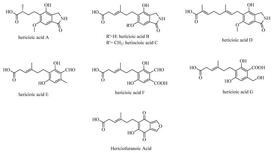 Notably, the chemical structures of hericerins share the same chemical structure as corallocins B–E, with variations in substitution at N-2 (Figure 6).