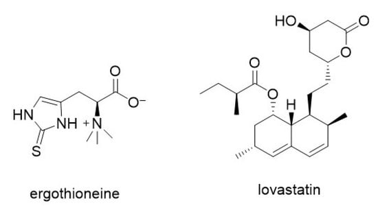 Chemical structures of ergothioneine and lovastatin.