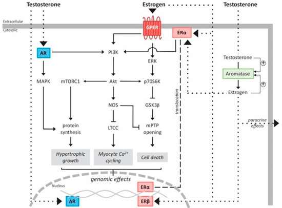 - Luo, T.; Kim, J.K. The Role of Estrogen and Estrogen Receptors on Cardiomyocytes: An Overview. Can. J. Cardiol. 2016, 32, 1017–1025. [Google Scholar] [CrossRef] [PubMed]