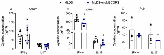 2.3. moMSCORS Treatment Decreases the Production of Pro-Inflammatory Cytokines