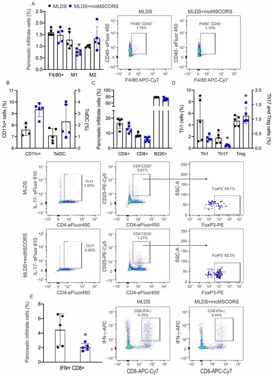 2.5. moMSCORS Treatment Affects the Proportion of Immune Cells in the Pancreas