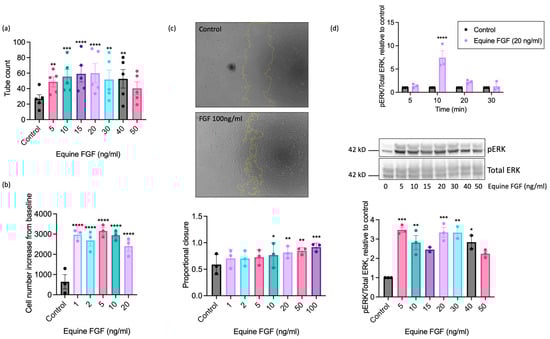 Finding, E.J.T.; Faulkner, A.; Nash, L.; Wheeler-Jones, C.P.D. Equine Endothelial Cells Show Pro-Angiogenic Behaviours in Response to Fibroblast Growth Factor 2 but Not Vascular Endothelial Growth Factor A. Int. J. Mol. Sci. 2024, 25, 6017. https://doi.org/10.3390/ijms25116017