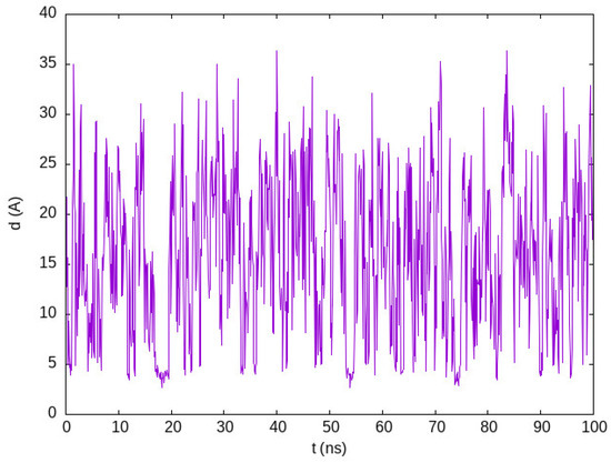 When the user chooses to run the analysis of a simulation, the compute server executes a series of scripts to calculate the RMSD and radius of gyration of the molecules with the cpptrajprogram of the AmberTools package (https://ambermd.org/AmberTools.php (accessed on 23 May 2024)), and it generates the figures shown in the results page with gnuplot (https://gnuplot.sourceforge.net/ (accessed on 23 May 2024)). The minimum intermolecular distance along the simulation and the number of intramolecular and intermolecular residue–residue contacts are calculated with our own FORTRAN code.