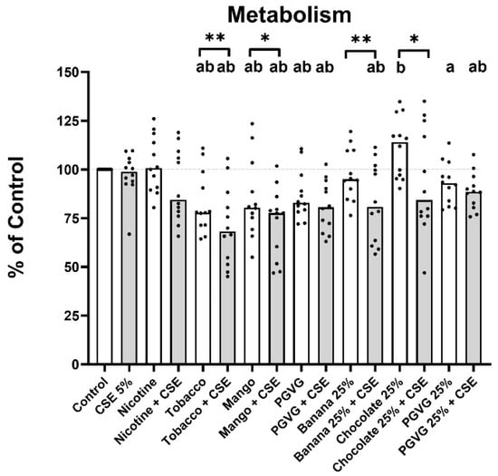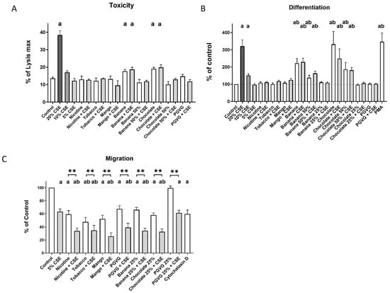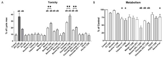 - Leslie, L.J.; Vasanthi Bathrinarayanan, P.; Jackson, P.; Mabiala Ma Muanda, J.A.; Pallett, R.; Stillman, C.J.P.; Marshall, L.J. A comparative study of electronic cigarette vapor extracts on airway-related cell lines in vitro. Inhal. Toxicol. 2017, 29, 126–136. [Google Scholar] [CrossRef] [PubMed]