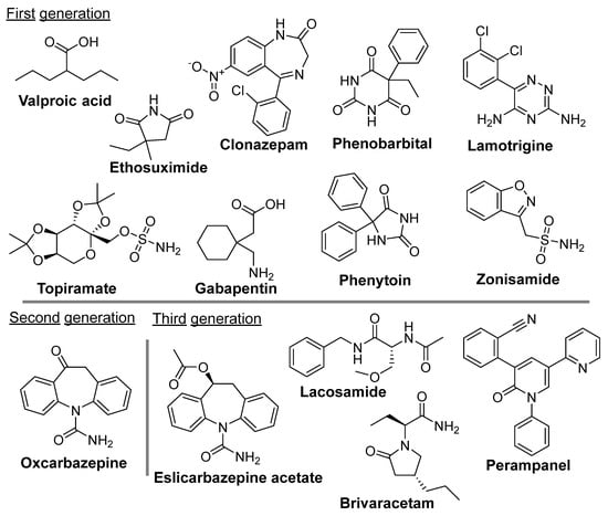 Chemical structures of clinically approved antiseizure medications discussed in this review.