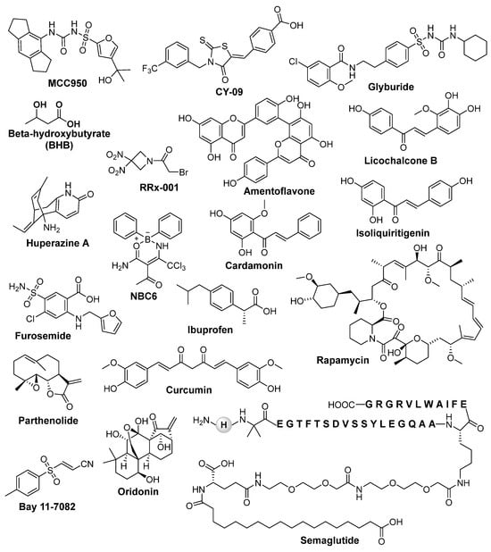 Chemical structure of different NLRP3 inflammasome inhibitors discussed in this review.
