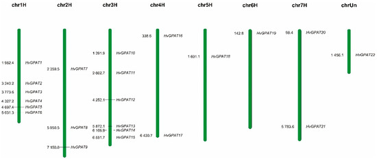 2.2. Chromosome Localization Analysis of HvGPAT Genes
