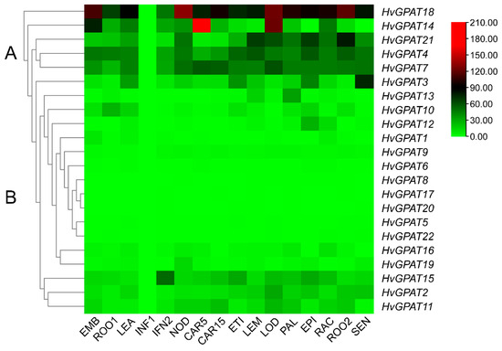 2.5. Expression Profiles of HvGPAT Genes in Different Tissues