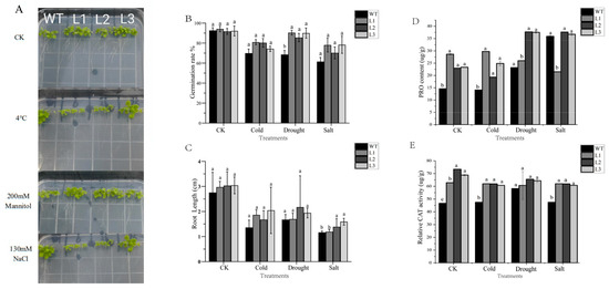 4.8. Arabidopsis Transformation, Plant Growth, and Abiotic Stress Treatments