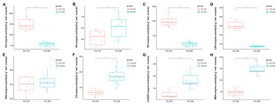 2.3. The Differential Activities of Enzymes Related to Energy Metabolism between the SM and FM of P. dentex