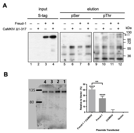 2.2. CaMKIV-Mediated Phosphorylation of Freud-1 in Cells