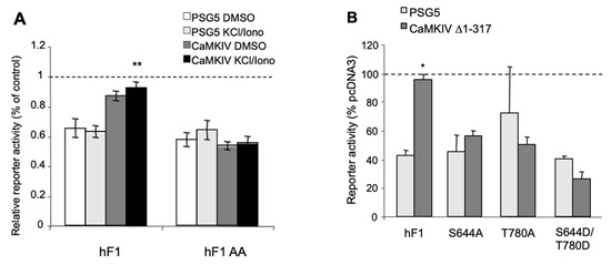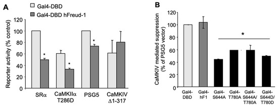 2.4. Activated CaMKIV Attenuates the Freud-1-Induced Repressor Activity