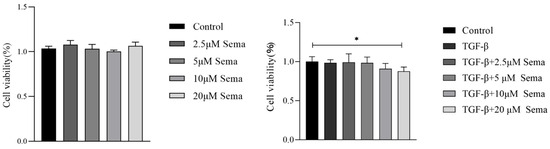 Viability assay of Semaglutide on HEECs induced with or without TGF-β. * p < 0.05.