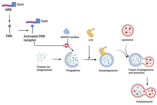 - Köster, S.; Upadhyay, S.; Chandra, P.; Papavinasasundaram, K.; Yang, G.; Hassan, A.; Grigsby, S.J.; Mittal, E.; Park, H.S.; Jones, V.; et al. Mycobacterium tuberculosis is protected from NADPH oxidase and LC3-associated phagocytosis by the LCP protein CpsA. Proc. Natl. Acad. Sci. USA 2017, 114, E8711–E8720. [Google Scholar] [CrossRef] [PubMed]