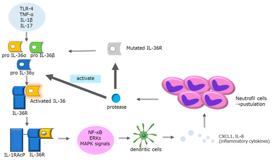 - Marrakchi, S.; Guigue, P.; Renshaw, B.R.; Puel, A.; Pei, X.Y.; Fraitag, S.; Zribi, J.; Bal, E.; Cluzeau, C.; Chrabieh, M.; et al. Interleukin-36-receptor antagonist deficiency and generalized pustular psoriasis. N. Engl. J. Med. 2011, 365, 620–628. [Google Scholar] [CrossRef] [PubMed]