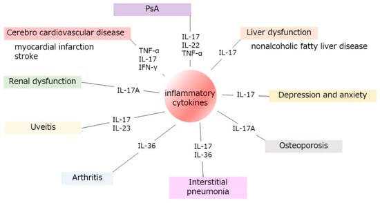 - Tashiro, T.; Sawada, Y. Psoriasis and Systemic Inflammatory Disorders. Int. J. Mol. Sci. 2022, 23, 4457. [Google Scholar] [CrossRef]