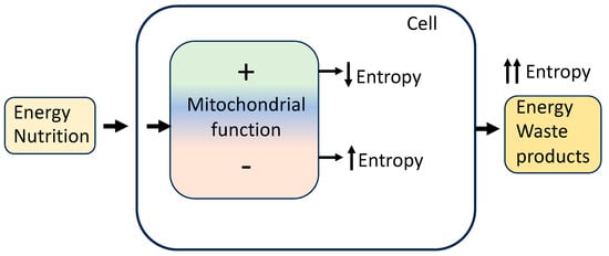 What are the possible clinical and lifestyle strategies to delay entropy or decrease the disruption of order processes? Methods and approaches to influence energy production by optimizing mitochondrial function will be presented. It should be noted, however, that not all aspects of ageing can be directly explained by the concept of entropy. The ageing process is influenced by numerous factors, including genetics, lifestyle, environmental factors, and stochastic events that cannot be fully captured by thermodynamic principles alone. The relation between ageing and the increase of entropy as the result of various degenerative processes was extensively studied [,,,,,,,,]. The focus of this paper is on methods to reduce intracellular entropy by increasing mitochondrial function and energy efficiency, improving intracellular repair and maintenance systems, reducing ROS formation and cellular damage, and how this affects ageing.