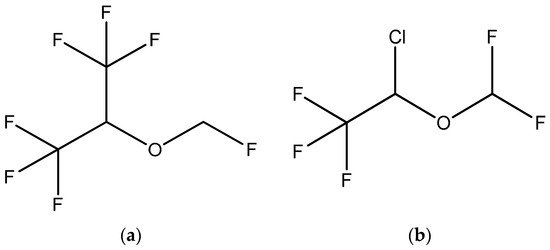 Chemical structure of Sevoflurane (a) and Isoflurane (b).