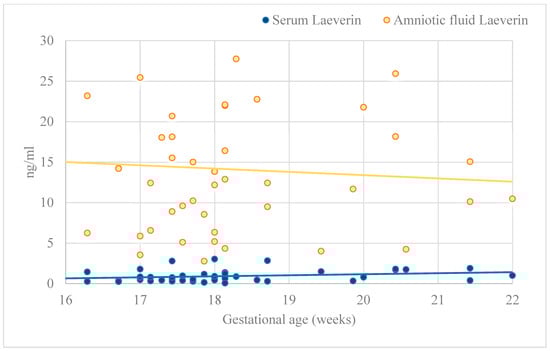 Amniotic fluid and maternal venous blood were collected from each subject at the time of amniocentesis. The blood samples were centrifuged at 3400 rpm for 15 min. The serum and amniotic fluid samples were stored at −80 °C until assay. The samples were retrieved from storage, thawed, and analyzed for laeverin and Gal-13.