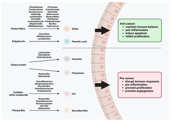 - Cox-York, K.; Stoecker, E.; Hamm, A.K.; Weir, T.L. Microbial metabolites in cancer promotion or prevention. In Microbiome Cancer; Springer: Berlin/Heidelberg, Germany, 2019; pp. 317–346. [Google Scholar]