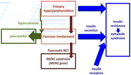 Carsote M, Nistor C, Gheorghe A-M, Sima O-C, Trandafir A-I, Nistor TVI, Sandulescu B-A, Ciobica M-L. Turning Points in Cross-Disciplinary Perspective of Primary Hyperparathyroidism and Pancreas Involvements: Hypercalcemia-Induced Pancreatitis, MEN1 Gene-Related Tumors, and Insulin Resistance. International Journal of Molecular Sciences. 2024; 25(12):6349. https://doi.org/10.3390/ijms25126349