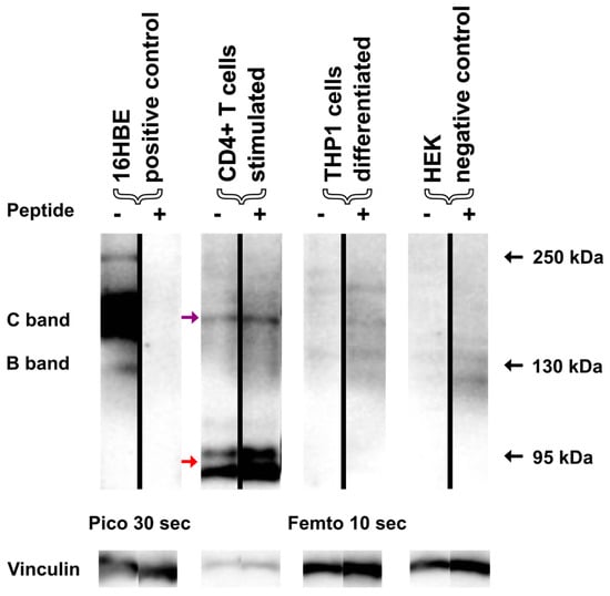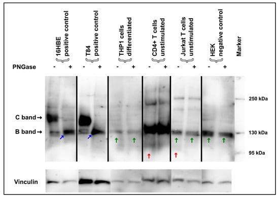 3.3. Deglycosylation of Mature CFTR Protein Detected via Immunoblotting Unveils Unspecific Protein Detection in Immune Cells