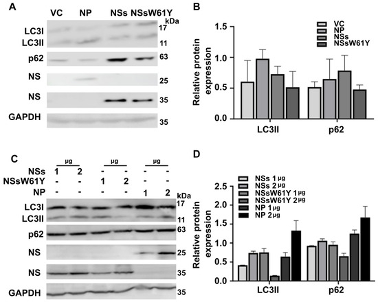 2.2. Autophagosome Marker Levels Are Downregulated by NSsW61Y Expression