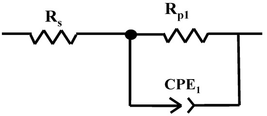 The Randles circuit is a simple circuit that is composed of a bias resistor (Rp), being connected in parallel with the constant phase element (CPE), which replaces the capacity of the ideal capacitor created due to the formation of the electric double layer, in parallel. The circuit is connected in series with the solution resistance (Rs) representing the resistance of the electrolyte and the resistance of the electrical conductors but also other external resistances of the cell connected in series [9,10].