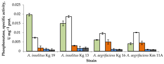 i or MPA, the studied strains demonstrated statistically similar results, exhibiting only a trace activity of phosphonatases, which is in agreement with previous data for