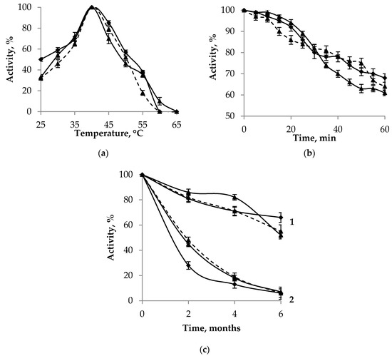 The stability of phosphonatases during long-term storage was studied for 6 months, with activity measurements every 2 months, incubating enzymes at 22 °C, 4 °C, −20 °C, and −40 °C.