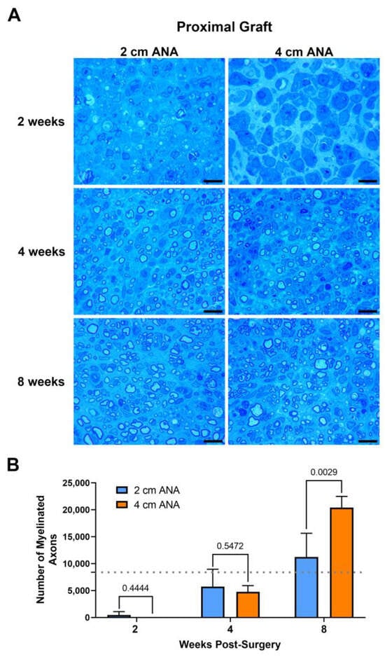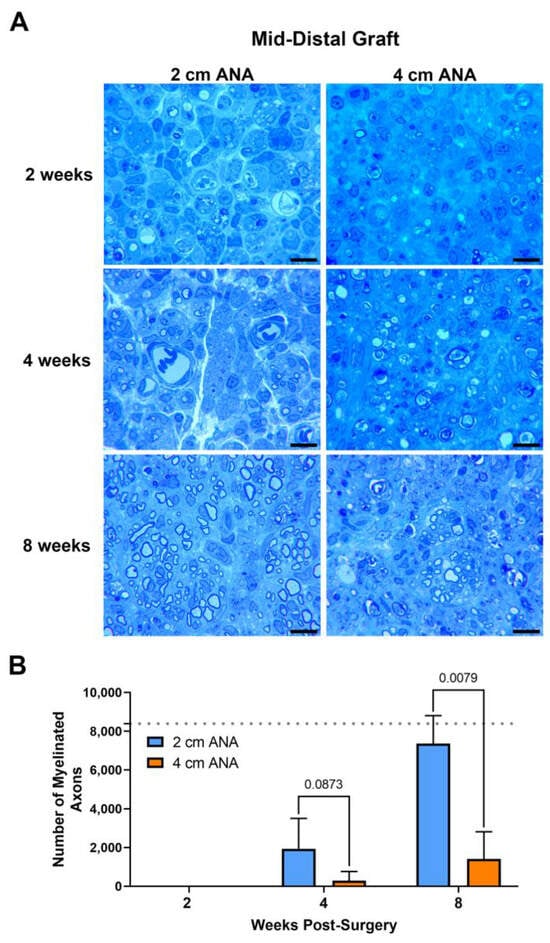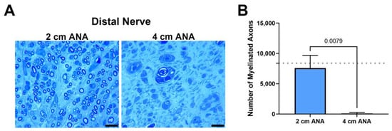 2.1.3. Fewer Number of Myelinated Axons Regenerated across Long ANAs into the Distal Nerve When Compared to Short ANAs