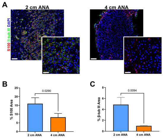 2.2. Schwann Cell Quantities within the Mid-Distal Graft of Long ANAs Is Markedly Reduced When Compared to Short ANAs