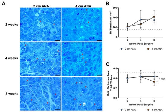 2.3.1. Histological Analysis shows Changes in Blood Vessel Morphology in the Mid-Distal Graft of Long ANAs