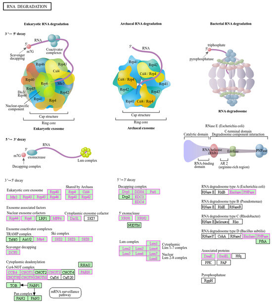 - Łabno, A.; Tomecki, R.; Dziembowski, A. Cytoplasmic RNA Decay Pathways–Enzymes and Mechanisms. Biochim. Biophys. Acta-Mol. Cell Res. 2016, 1863, 3125–3147. [Google Scholar] [CrossRef] [PubMed]