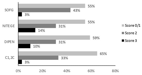 The score frequencies for each of the parameters investigated in the ROIs.