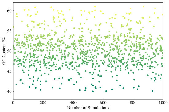 Based on empirical data from file and simulation experiments, the ECA-PCRAIR algorithm effectively manages GC content and homopolymer situations. The experiments demonstrated that GC content was consistently maintained between 40% and 60%, with a concentration range of 45% to 55%. Long homopolymers were kept below 4 nt, and homopolymers of 4 nt or longer appeared in only 0.06% of cases. This minimal occurrence is unlikely to substantially impact the overall PCR reaction, underscoring the ECA-PCRAIR algorithm’s superior performance in controlling GC content and homopolymer formation.