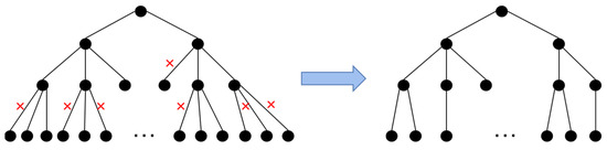 (1) An initialized numeric value (usually ) is selected, and a new binary stream is obtained by adding “0” to the original binary sequence. The probability distribution of the string with length in the binary stream is counted, and the required codeword length is matched according to the pruning optimization algorithm.