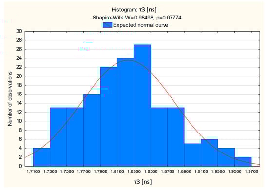 Histogram for τ3 [ns] using Shapiro–Wilk normality test.