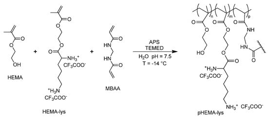 2.1. Synthesis of L-Lysine Poly(2-hydroxyethyl methacrylate) Cryogels (pHEMA-lys)