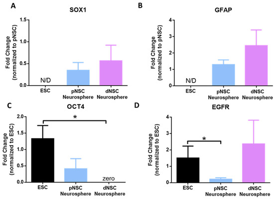 2.2. Human pNSC and dNSC Neurospheres Have Distinct Genetic Expression Profiles