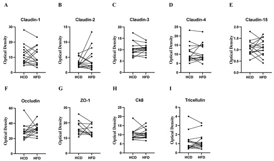 This study addresses whether extremes in dietary macronutrient composition can affect intestinal permeability with a focus on HFD. Previous studies from our group have already shown, in the same clinical setting, that expression of the ketogenesis rate-limiting enzyme HMGCS2 increased in the jejunum after two weeks of HFD in healthy, normal-weight individuals compared to HCD [