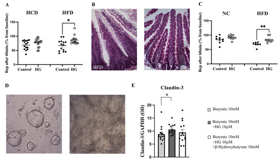 17]. In a previous study from our laboratory, we showed that an HFD resulted in markedly raised jejunal expression of the ketogenesis rate-limiting enzyme mitochondrial 3-hydroxy-3-methylglutaryl-CoA synthase (HMGCS2), resulting in the intestinal mucosa producing ketone bodies β-Hydroxybutyrate (βHB), not under starvation but under consumption of a diet with high-fat content [