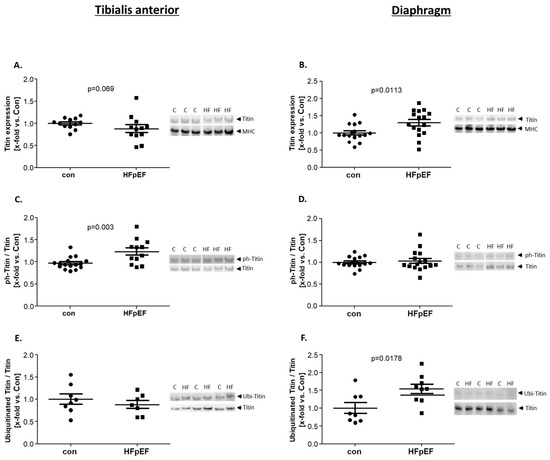 Vahle, B.; Heilmann, L.; Schauer, A.; Augstein, A.; Jarabo, M.-E.P.; Barthel, P.; Mangner, N.; Labeit, S.; Bowen, T.S.; Linke, A.; et al. Modulation of Titin and Contraction-Regulating Proteins in a Rat Model of Heart Failure with Preserved Ejection Fraction: Limb vs. Diaphragmatic Muscle. Int. J. Mol. Sci. 2024, 25, 6618. https://doi.org/10.3390/ijms25126618