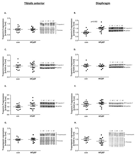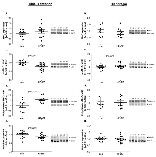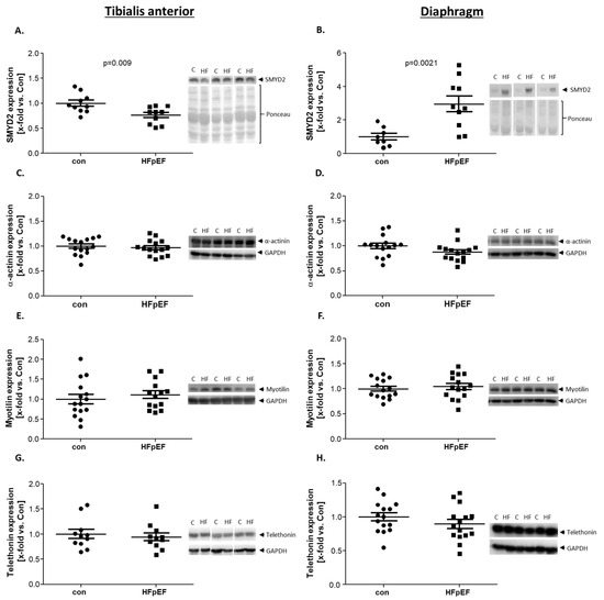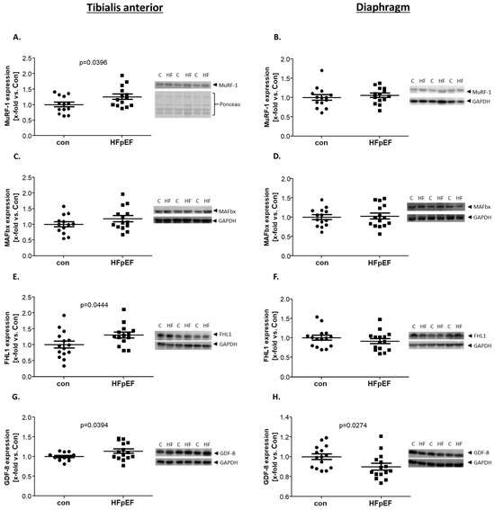 - Mangner, N.; Garbade, J.; Heyne, E.; van den Berg, M.; Winzer, E.B.; Hommel, J.; Sandri, M.; Jozwiak-Nozdrzykowska, J.; Meyer, A.L.; Lehmann, S.; et al. Molecular Mechanisms of Diaphragm Myopathy in Humans with Severe Heart Failure. Circ. Res. 2021, 128, 706–719. [Google Scholar] [CrossRef] [PubMed]