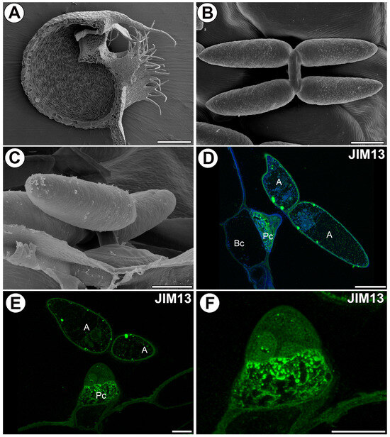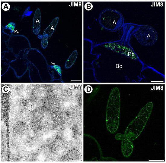 - Rafińska, K.; Niedojadło, K.; Świdziński, M.; Niedojadło, J.; Bednarska-Kozakiewicz, E. Spatial and Temporal Distribution of Arabinogalactan Proteins during Larix decidua Mill. Male Gametophyte and Ovule Interaction. Int. J. Mol. Sci. 2021, 22, 4298. [Google Scholar] [CrossRef]