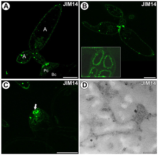 - Samaj, J.; Samajova, O.; Baluska, E.; Lichtscheidl, I.; Knox, J.P.; Volkmann, D. Immunolocalization of LM2 arabinogalactan protein epitope associated with endomembranes of plant cells. Protoplasma 2000, 212, 186–196. [Google Scholar] [CrossRef]